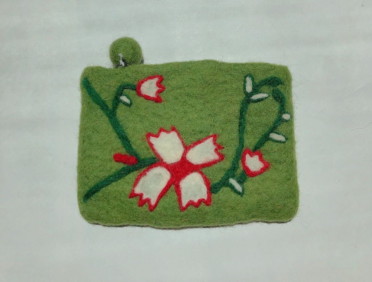 抹茶色に白い花
